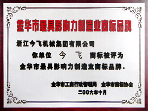 • 金華市最具影響力制造業(yè)商標(biāo)品牌