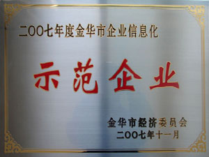 • 二〇〇七年度金華市企業(yè)信息化示范企業(yè)