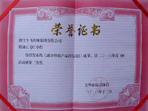 • 2007年金華市優(yōu)秀企業(yè)金星獎