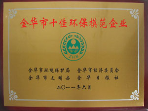 • 金華市十佳環(huán)保模范企業(yè)