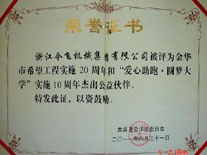 • 金華市希望工程實(shí)施20周年和“愛心助跑 圓夢大學(xué)”實(shí)施10周年杰出公益伙伴