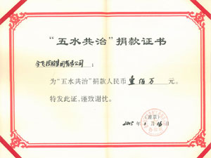 • “五水共治”捐款證書