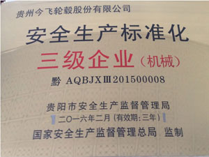 • 安全生產(chǎn)標(biāo)準(zhǔn)化三級企業(yè)(機(jī)械)