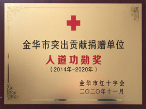 • 金華市突出貢獻(xiàn)捐贈單位人道功勛獎(2014年-2020年)