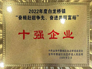 • 今飛新材料-2022年度白龍橋鎮(zhèn)“奮楫趕超爭先、奮進(jìn)共同富?!笔畯?qiáng)企業(yè)
