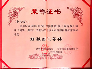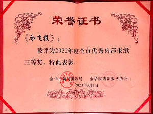 • 今飛報(bào)-2022年度全市優(yōu)秀內(nèi)部報(bào)紙三等獎