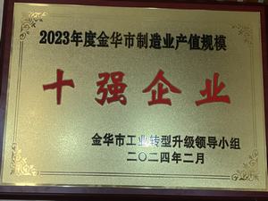• 今飛控股-2023年度金華市制造業(yè)產(chǎn)值規(guī)模十強(qiáng)企業(yè)