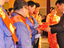 • 公司董事長兼總裁葛炳灶為先進(jìn)員工頒獎(jiǎng)