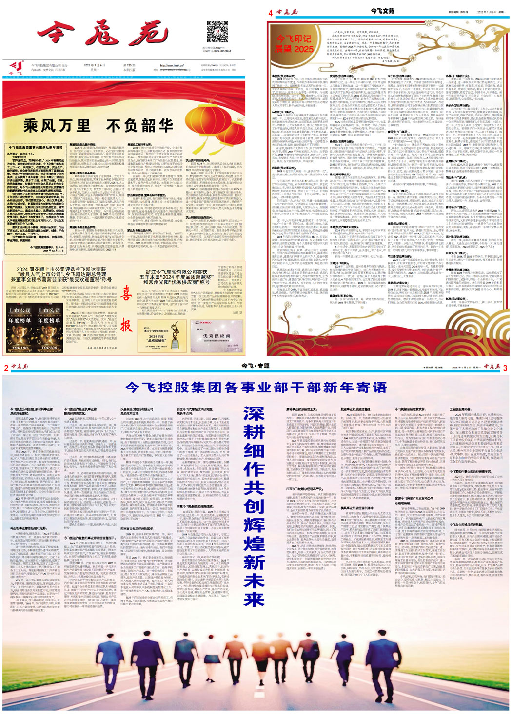乘風(fēng)萬里 不負(fù)韶華——今飛控股集團(tuán)董事長葛炳灶新年賀詞乘風(fēng)萬里 不負(fù)韶華喜報(bào)丨浙江今飛摩輪有限公司喜獲五羊本田“2024年度品質(zhì)超越獎(jiǎng)”和常州光陽“優(yōu)秀供應(yīng)商”稱號(hào)喜報(bào)丨今飛凱達(dá)榮獲2024同花順上市公司"最具人氣上市公司"、今飛凱達(dá)副總經(jīng)理兼董事會(huì)秘書葛茜蕓榮獲"最受歡迎董秘"稱號(hào)今飛印記展望2025今飛控股集團(tuán)各事業(yè)部干部新年寄語——深耕細(xì)作共創(chuàng)輝煌新未來